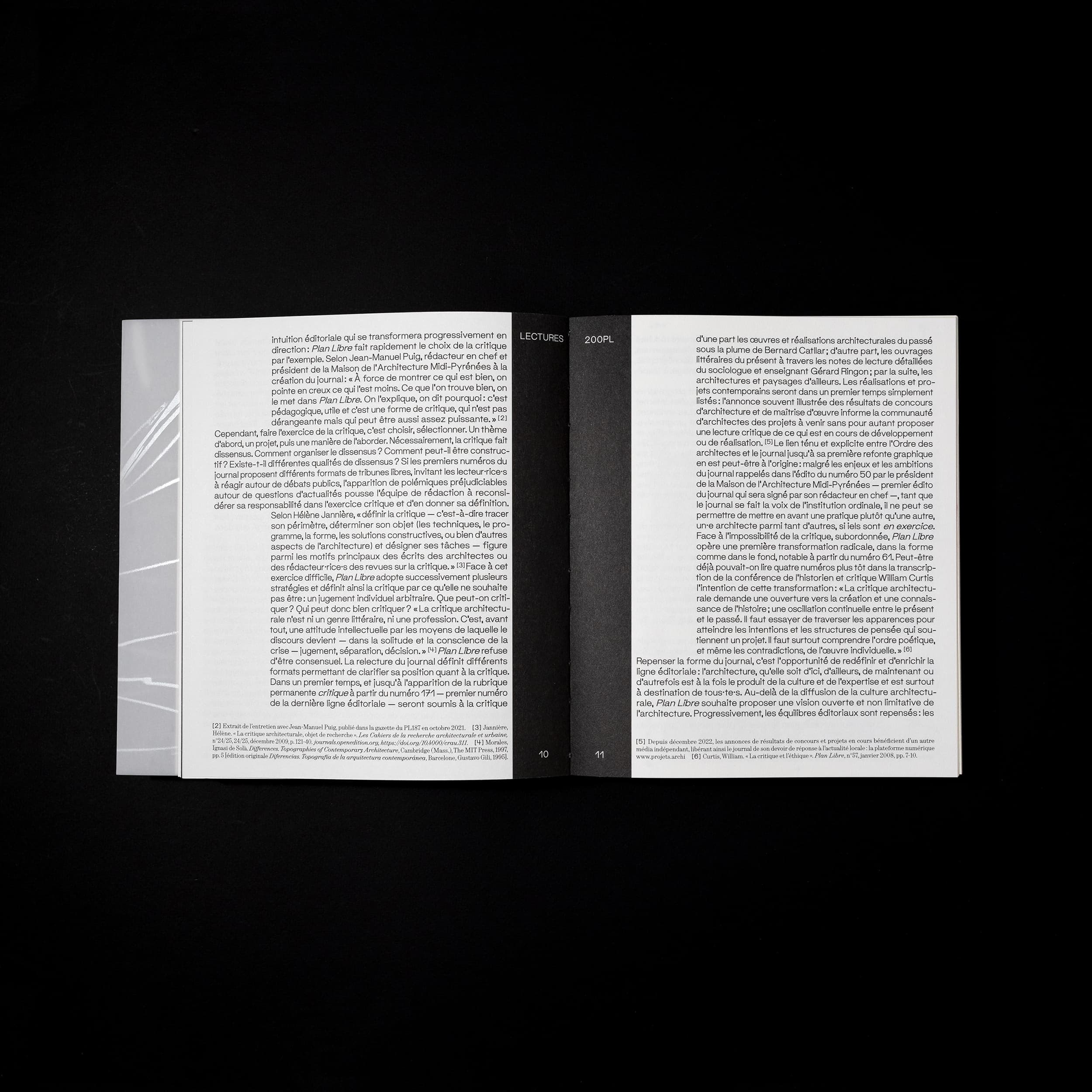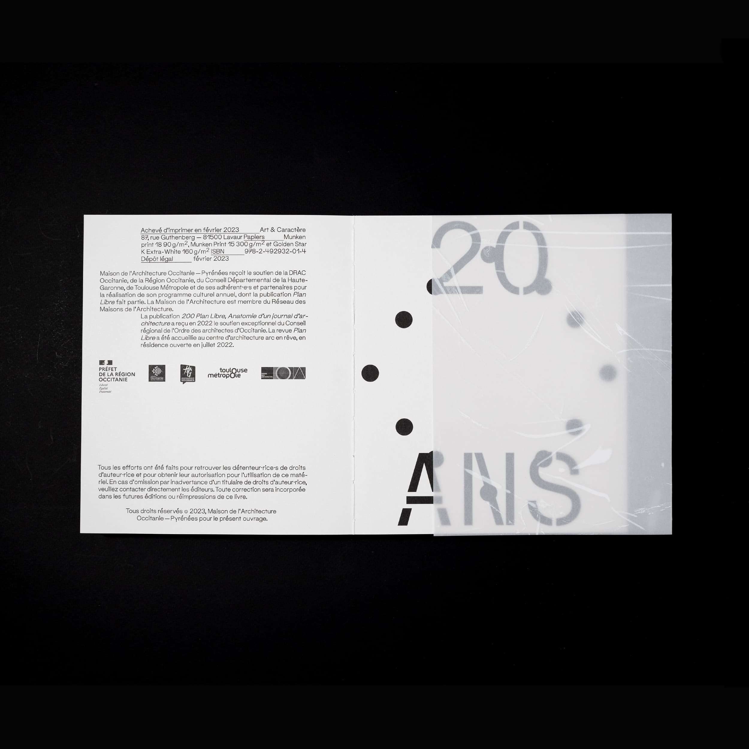 Motif blister et macules fantômes pour fêter l’anniversaire du journal Plan Libre ! « 200 Plan libre. Anatomie d’un journal d’architecture » retrace l’histoire de 20 ans de parutions, au fil de ses contributeurs et de ses versions graphiques. Le livre s’articule autour de quatre parties, lisibles sur la tranche : LECTURES apporte un regard actuel sur les évolutions de la discipline 🔎 FAC-SIMILÉS reproduit une sélection d’articles phares 🔦 RECUEIL D’IMAGES s’amuse à produire des rencontres iconographiques 💥 ANALYSE DE DONNÉES propose un regard analytique par des données soigneusement collectées 📈