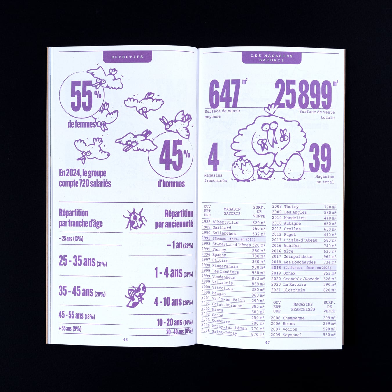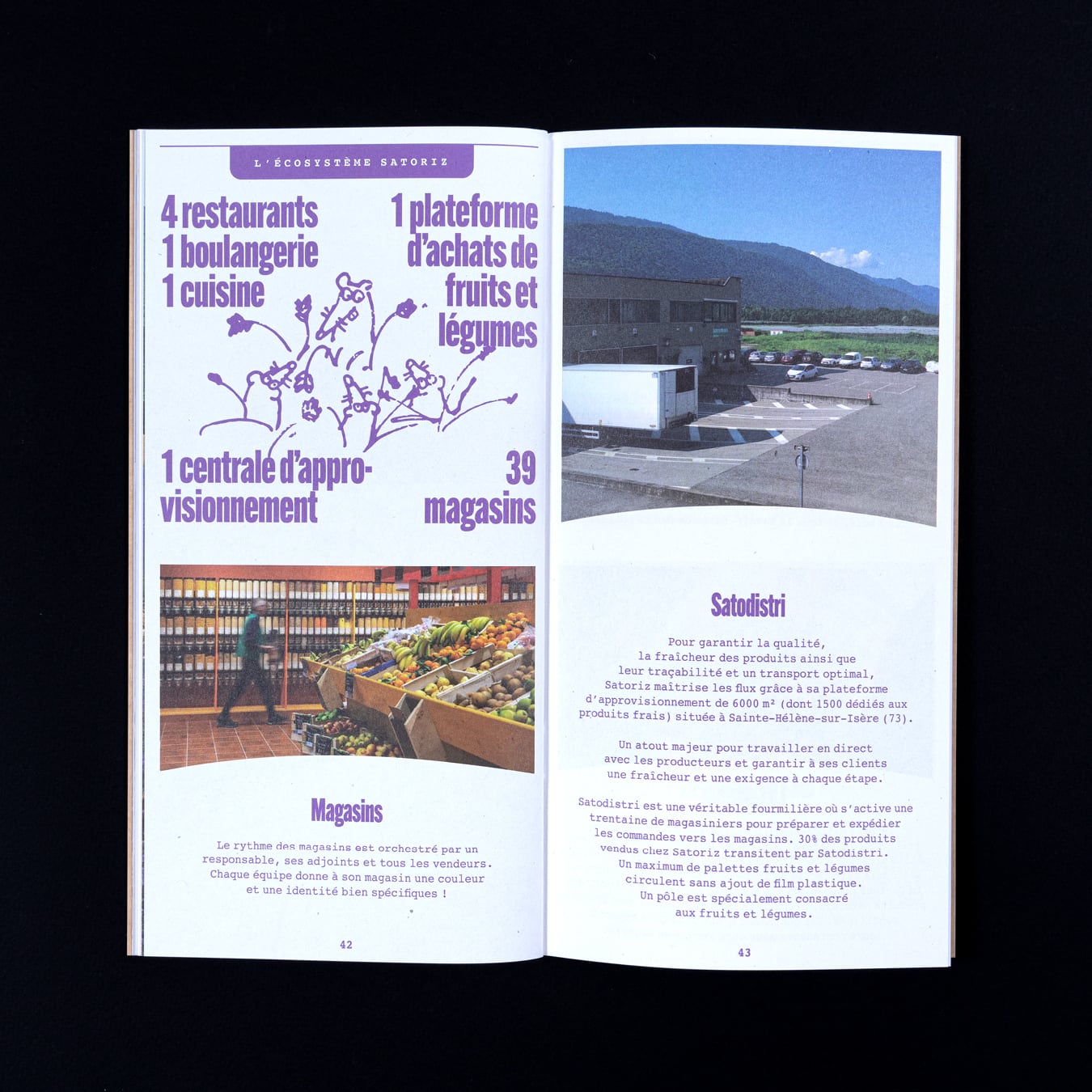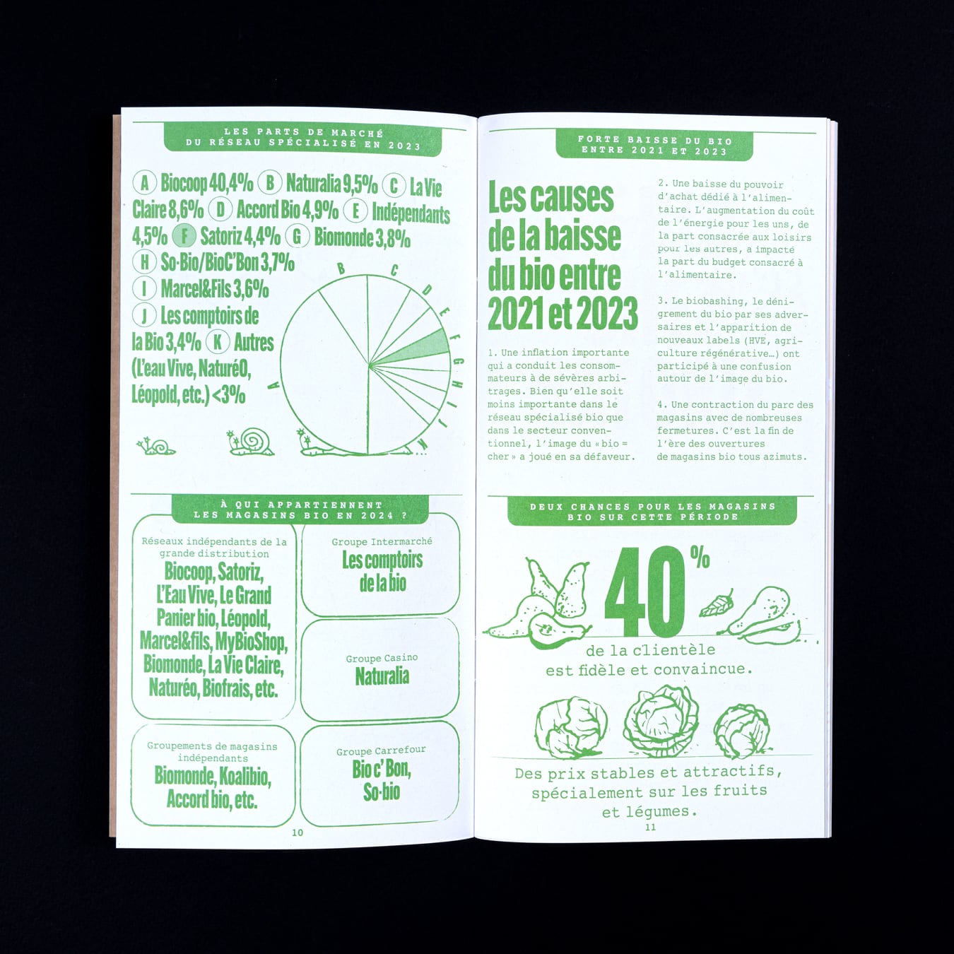 Rapport d’activité destiné à la clientèle des magasins bio Satoriz. Son format carré et ses contenus calibrés ont été conçus pour être relayés rapidement sur les réseaux sociaux.