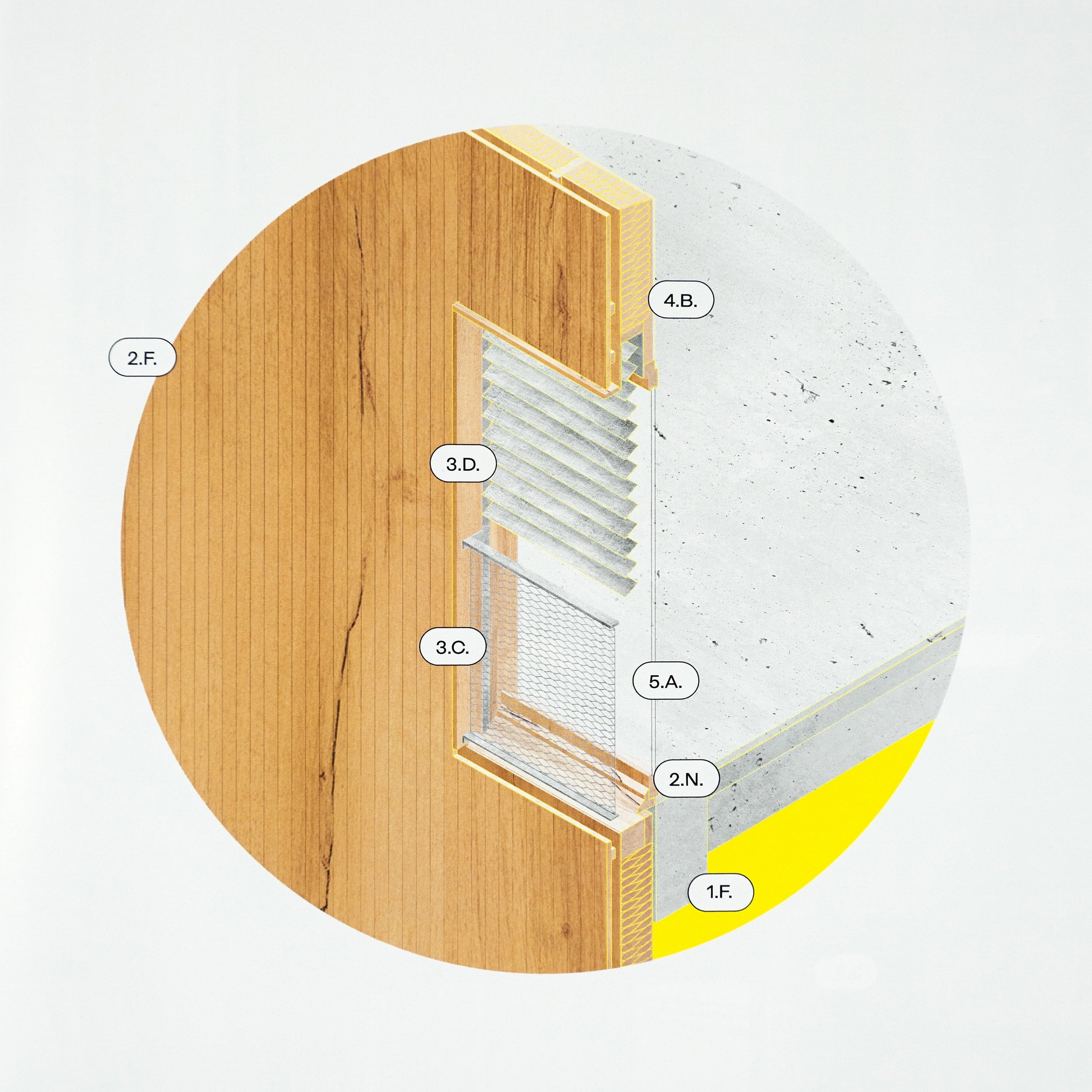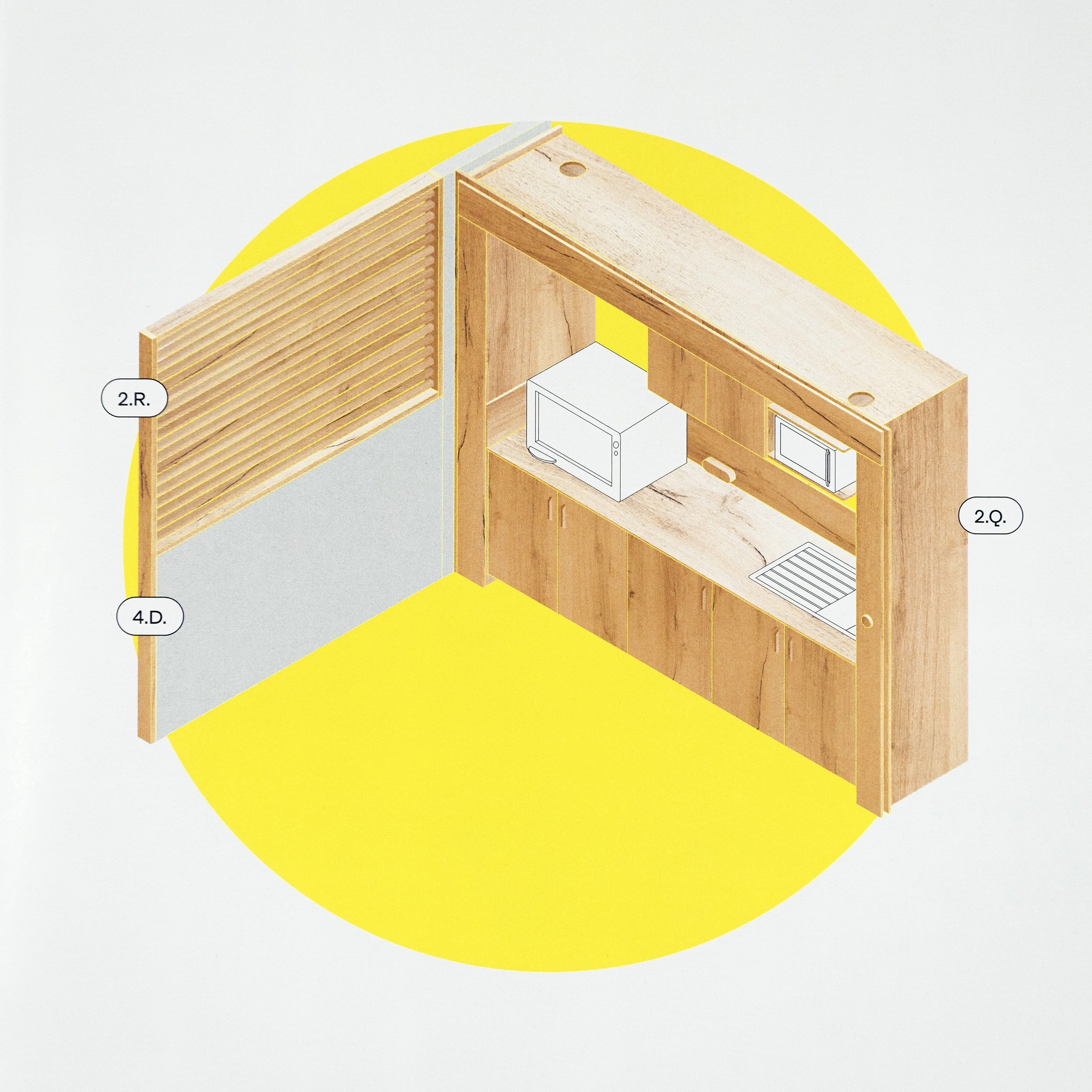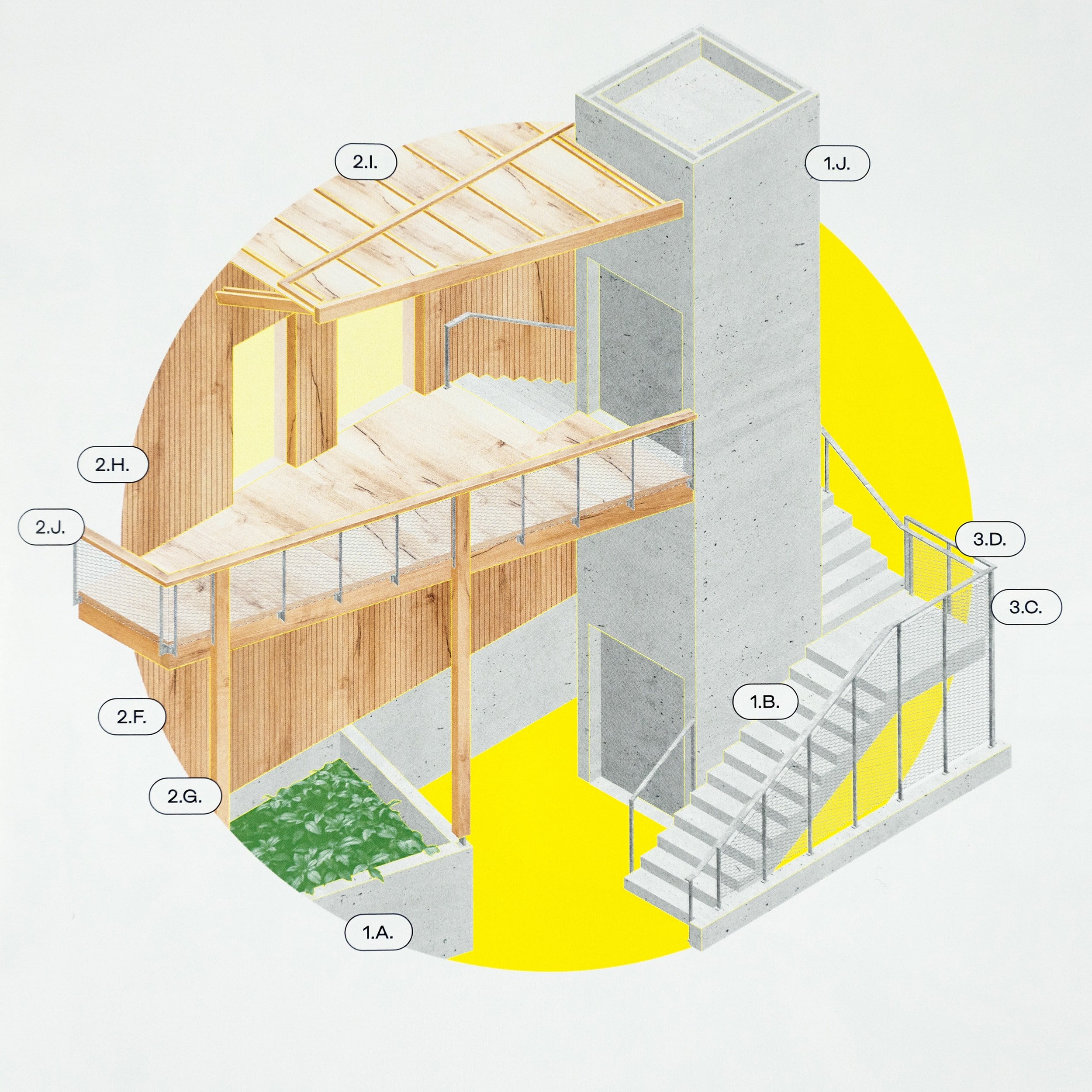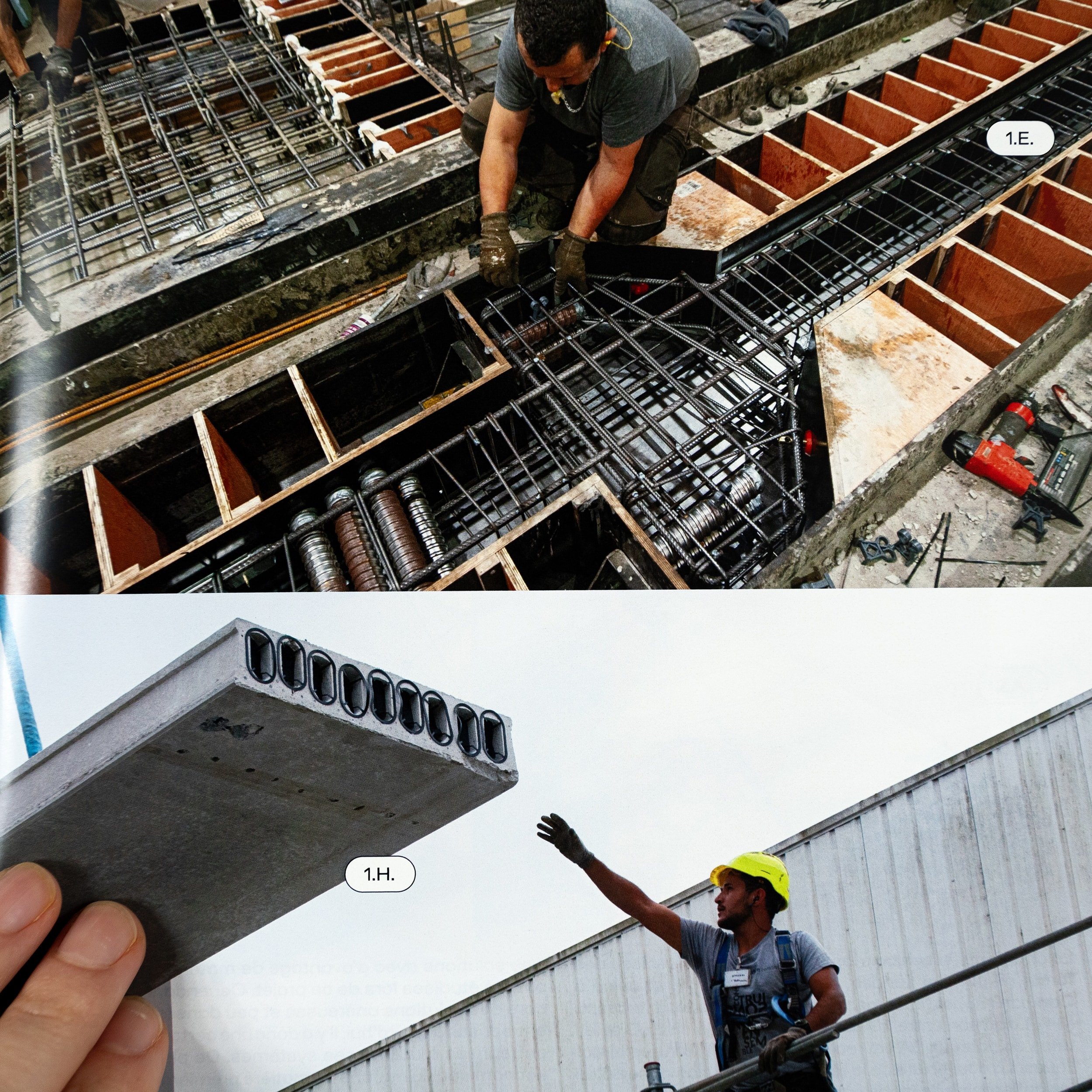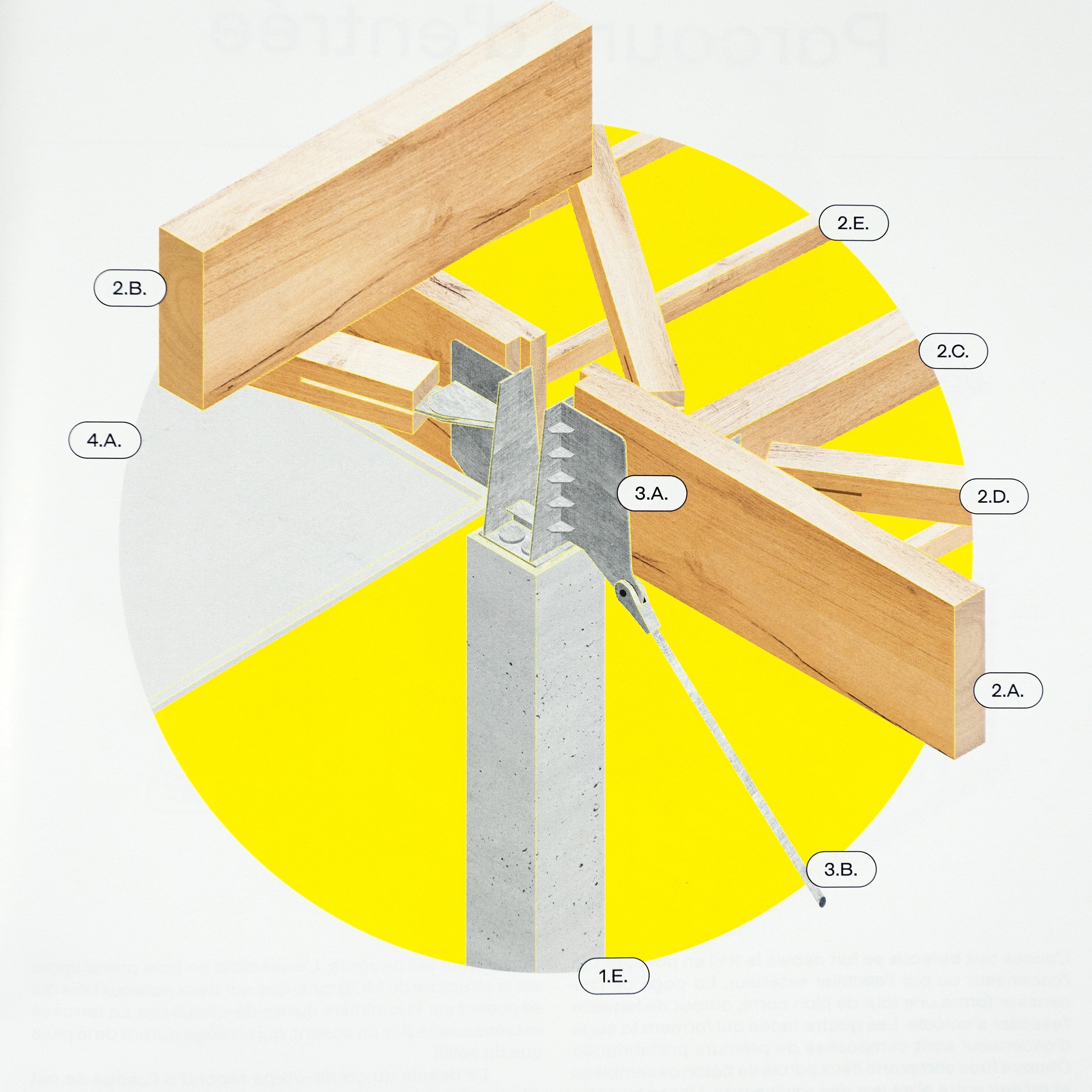 L’agence d’architecture Tikoam nous sollicite pour rendre compte du processus de pré-fabrication des laboratoires Renaudin. Le dossier de presse prend la forme d’une notice de montage, qui décompose les étapes essentielles de la construction. Les axonométries réalisées pour l’occasion illustrent les proportions des différents matériaux utilisés (béton, bois, métal, minéral, verre). Chaque fois référencés, ces matériaux permettent de poser trois regards objectifs sur le bâtiment : empreinte carbone — temps de mise en œuvre — coût de construction.