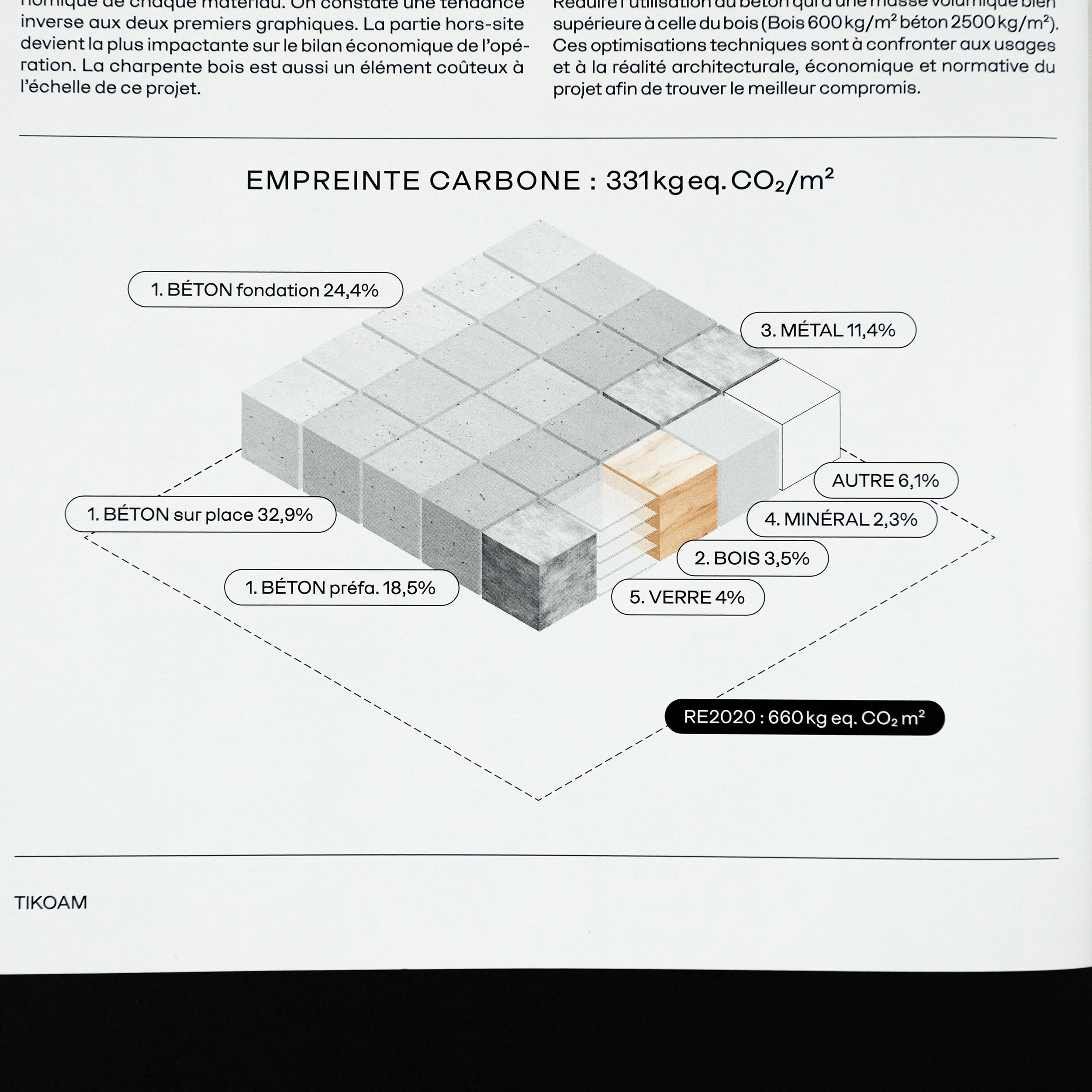 Architecture et rédaction Équipe Tikoam Suivi éditorial Manuela Navarro Analyse de données Flavien Bessière Photographies Sylvain Ballan (chantier) et Emmy Martens (bâtiment livré) Imprimeur Art & Caractère Mise en page et illustration co-dessiné avec Laura Savignac