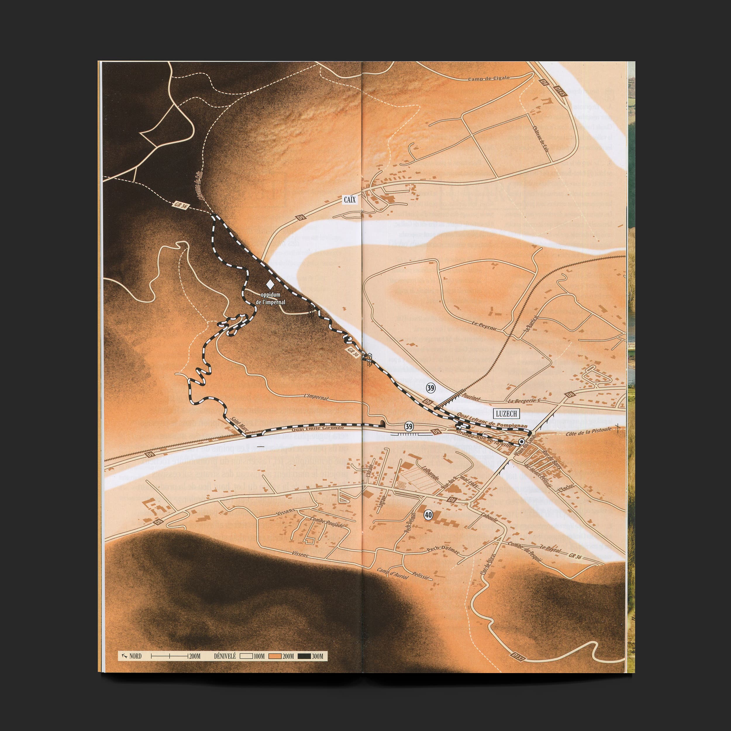 Les cartes du Guide de balades d’architecture sont dessinées à mi-chemin entre 2D et 3D. Cette mise en volume des plans permet au visiteur de mieux se repérer dans le grand paysage, et souligne le rapport du bâti à son environnement. Trois mises en relief de la vallée du Lot invitent à de courtes randonnées, offrant un point de vue particulier sur l’architecture lotoise. Cahors : une balade urbaine au-delà du boulevard Gambetta. Cajarc : promenade dans les méandres de la vallée. Luzech : un itinéraire pour prendre de la hauteur, et apprécier les échos au vernaculaire dans l’architecture moderne.