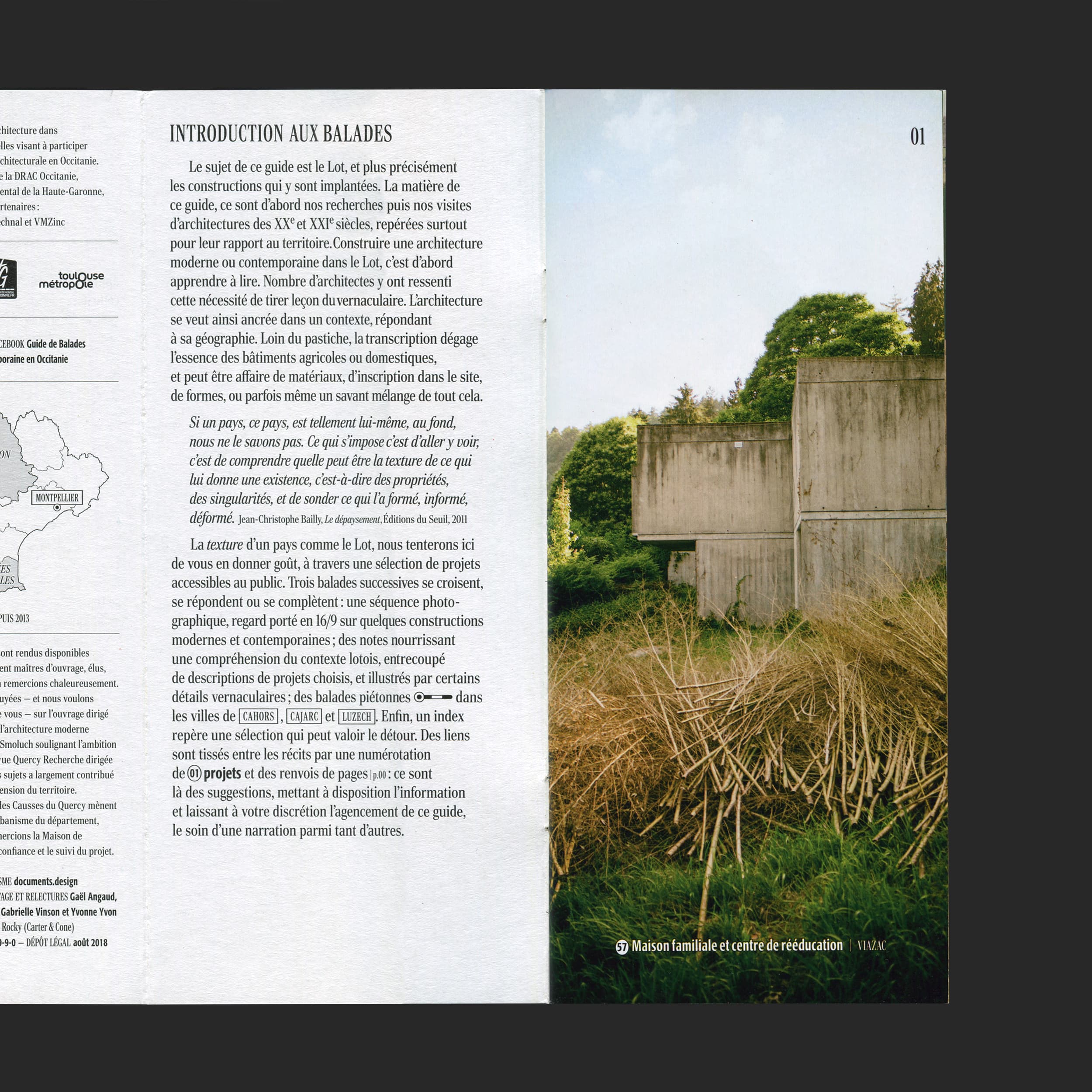 Date 2018 Lieu Département du Lot Client Maison de l’architecture Occitanie-Pyrénées Photographe Ulrich Lebeuf Architecte Aude Pinault Typographie Rocky, dessiné par Matthew Carter
