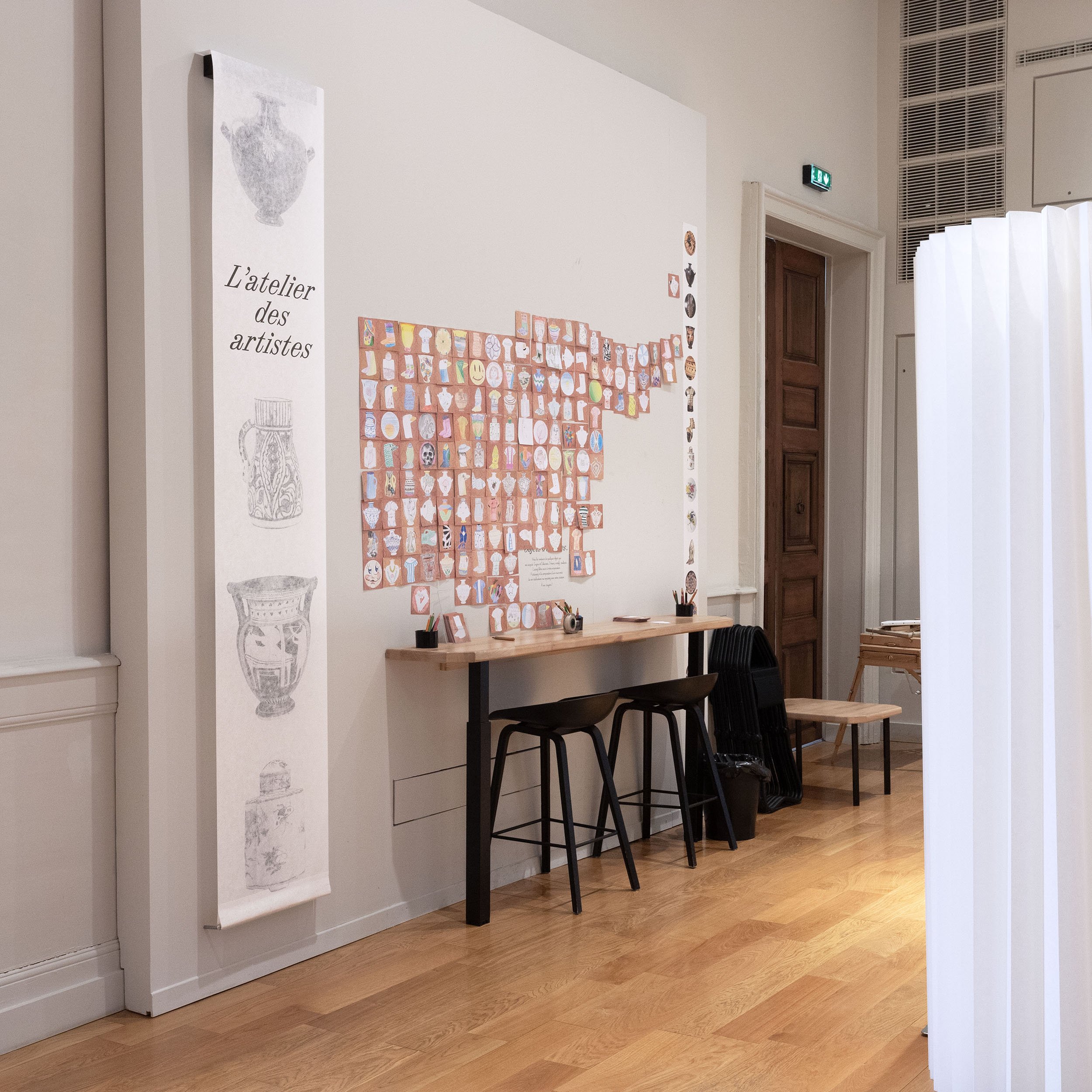 Les croquis sont à l’origine de toute œuvre: en cela, ils sont au plus proche de l'imaginaire des peintres. Le dialogue entre les artistes se situe dans le montage de l’iconographie: il cherche à montrer les singularités de chaque dessin, tout en recomposant une image pleine et contemporaine. L’usage d’un papier intissé prend son sens dans l’agrandissement des images, et permet d’obtenir un rendu tout en nuances.
