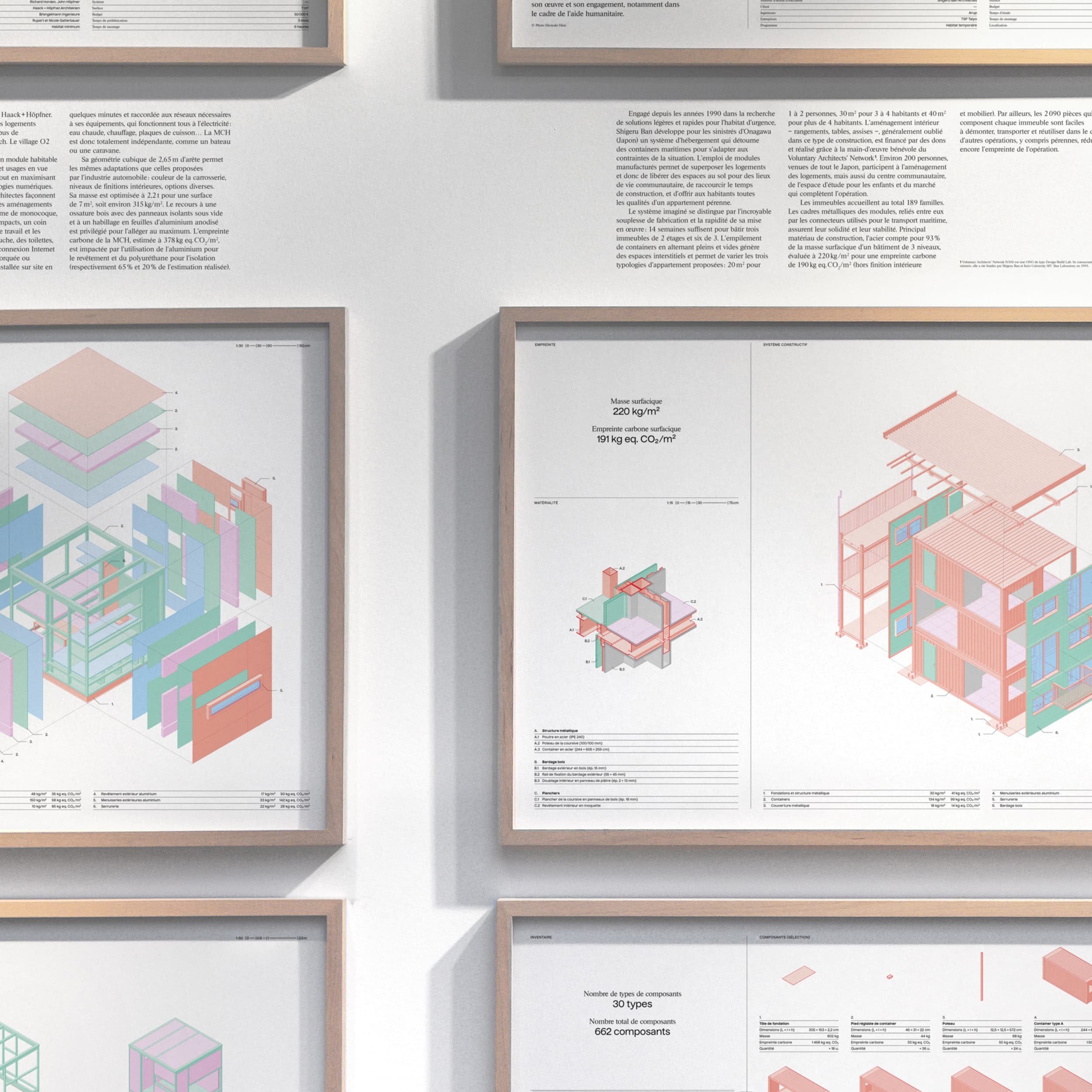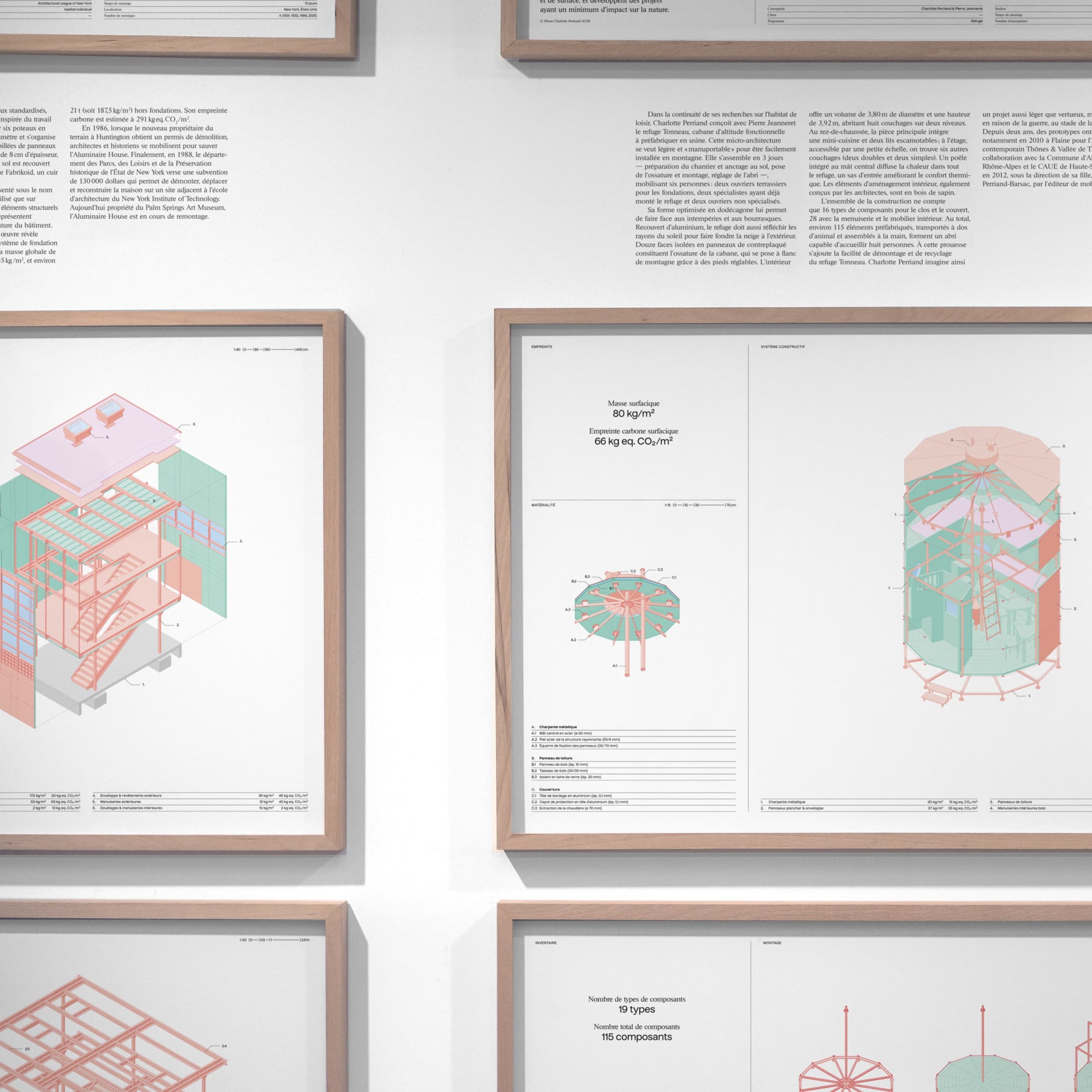 Panorama de constructions préfabriquées et démontables, l’exposition retrace les expérimentations pour un habitat léger aux ambitions écologiques de frugalité. L’étude comparative d'une trentaine d’architectures (masse, empreinte carbone, préfabrication, modularité, etc) est déployée en périphérie, en vis-à-vis d’images à l’échelle 1 d’espaces intérieurs.